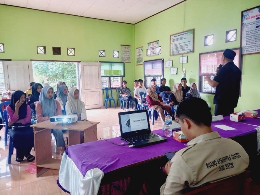 Ruang Komunitas Digital Desa Batin adakan kegiatan pelatihan Jurnalistik Masyarakat yang dilakasanakan pada minggu 30 Mei 2024 bertempat di Aula Kantor Desa. Kades Surya Membuka secara langsung Pelatihan Jurnalistik Masyarakat. Disampaikan kades, kegiatan ini sangat penting guna meningkatkan pengetahuan pemuda dan pemudi Desa Batin tentang dunia jurnalistik. Selain itu, kegiatan ini juga bertujuan untuk mempromosikan Desa Batin Sebagai Desa yang Inovatif dalam memanfaatkan teknologi sebagai media yang informatif kepada masyarakat.